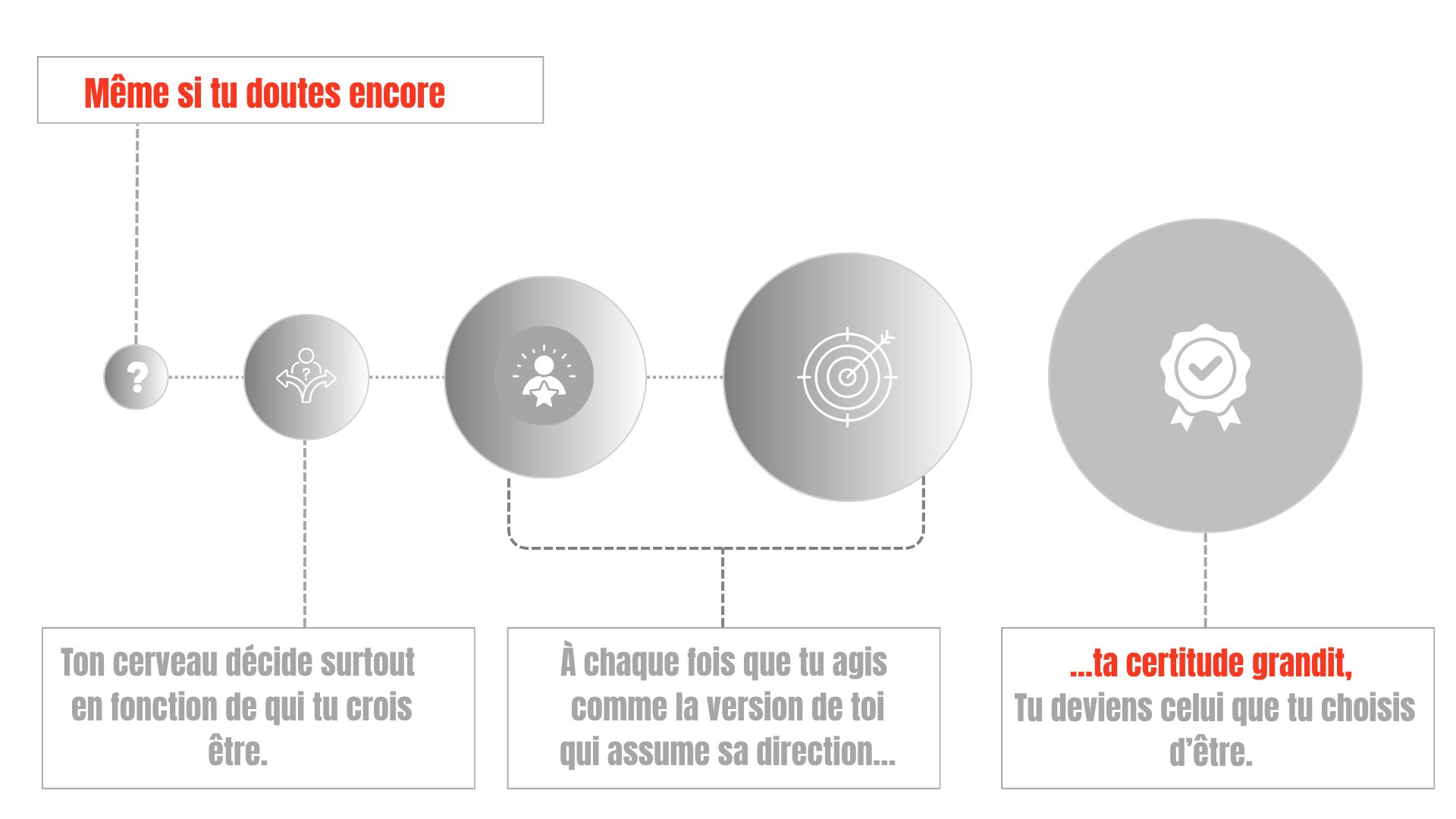 Une étude de Daniel Kahneman a montré que notre cerveau prend ses décisions d’après ce que nous croyons être, plus que d’après les options disponibles. Autrement dit, ta certitude augmente quand tu agis comme la version de toi qui assume sa direction, même avant de te sentir parfaitement sûr.